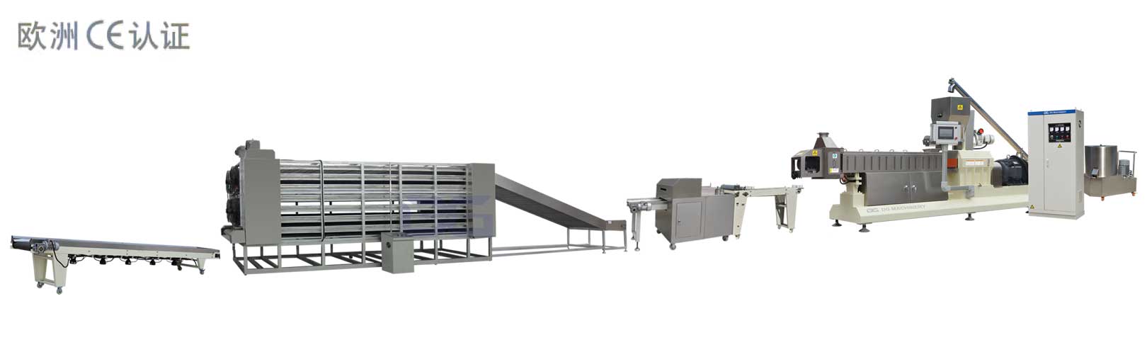 德固可食用吸管生產線以面粉、大米粉、木薯淀粉、玉米淀粉等為主要原料,雙螺桿擠壓機擠出管狀坯料,再冷卻切割、烘干即可制成表面光滑、管壁厚薄均勻、結實有韌性、耐浸泡的可食用吸管;吸管可浸于冷飲4-5小時、浸于熱飲1-2小時而保持結構堅挺不變形;雙螺桿擠壓機集混合揉練、蒸煮熟化、擠出成型過程于一身,生產工藝簡化、生產過程易實現精準控制、產品品質穩定,全流水線生產、生產效率高、安全衛生無廢料;德固的專有生產技術還可使原料選擇多樣、擠出管形多樣,我們提供多種產量和配置的生產線供您選擇!