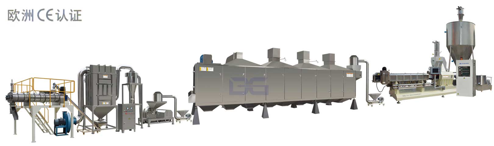 雙螺桿擠壓膨化機生產變性淀粉,是變性淀粉生產的一種新技術。該技術是將輸送混合、加溫加壓、剪切熔融等操作集于一體的雙螺桿擠壓膨化機做反應器,進行淀粉的熱化學變性;是高溫、短時、低水分、高能量的熱化學過程,可把幾個化學反應放在單一的設備中進行,時空產量高;設備配套簡單、占地小、操作方便;雙螺桿擠壓機作為反應器可連續生產氧化、酯化、交聯、醚化等多種類型的變性淀粉,且無污水產生;雙螺桿擠壓機具有更高的混合效率、過程控制好、產品均一,是快捷、連續生產多種變性淀粉的一種經濟可行的加工方法。